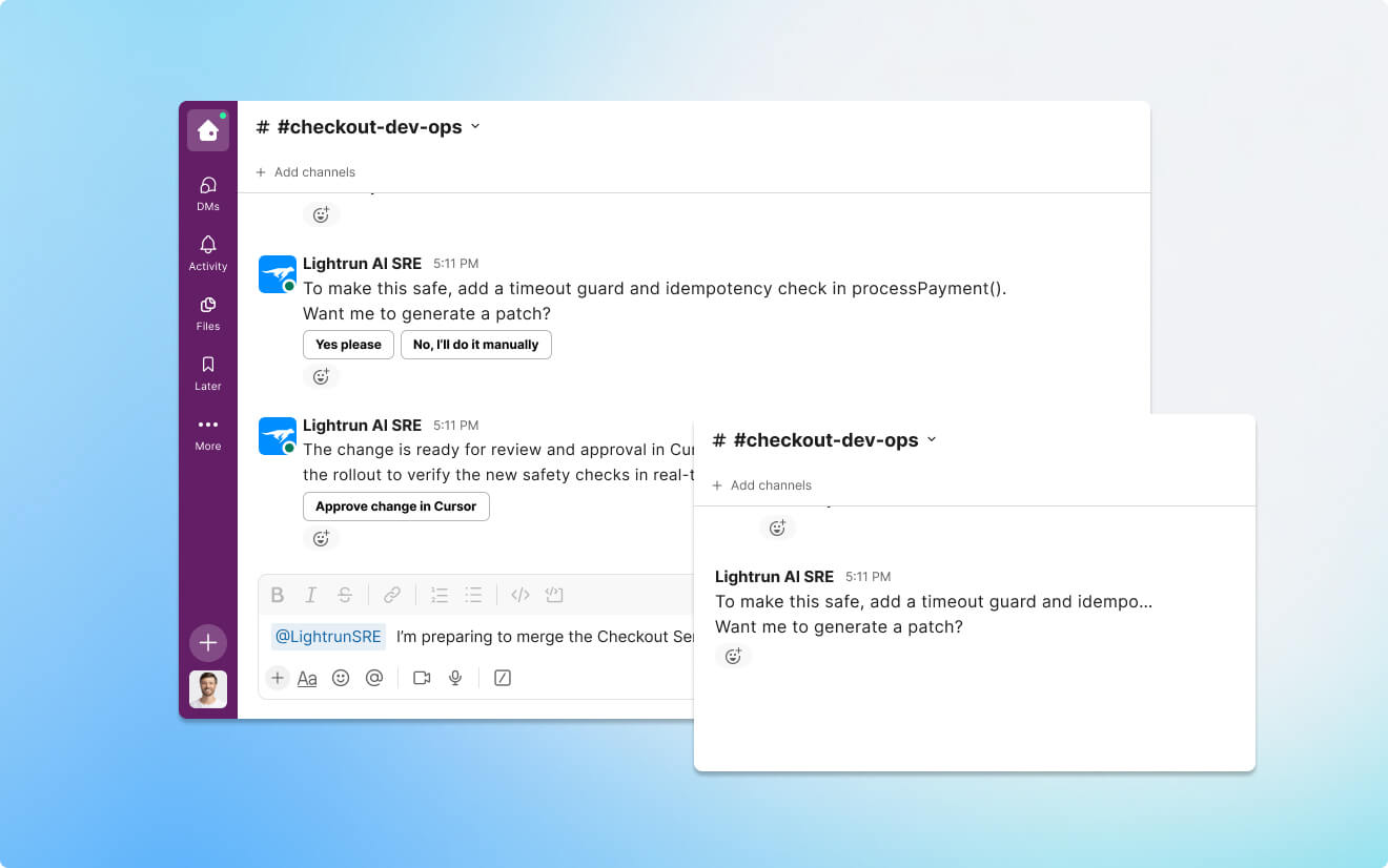 Reduce engineer toil by handing investigation, validation, and follow-up to the AI, all without removing human control.