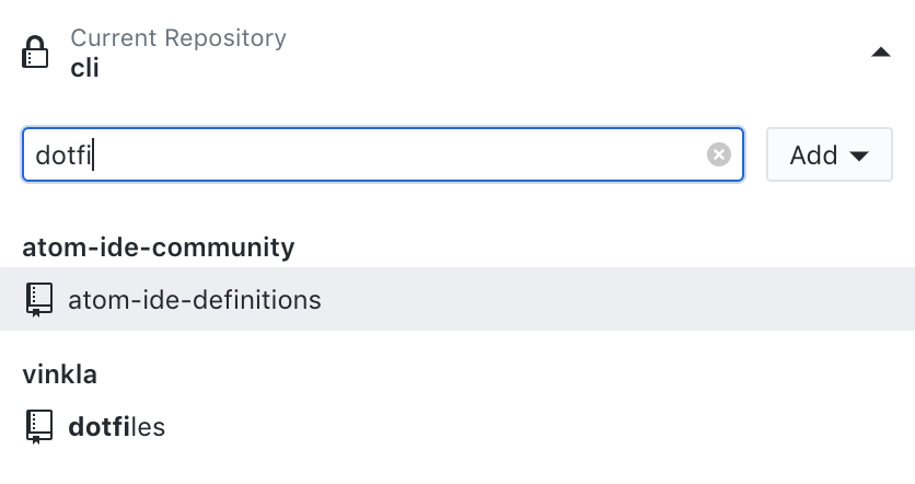 dotfibut theatom-ide-definitionsrepository is still listed before thedotfilesrepository.Maybe? I think we’d need a spike branch with some dummy repository/account data to experiment with from a UX perspective, to figure out what makes sense.