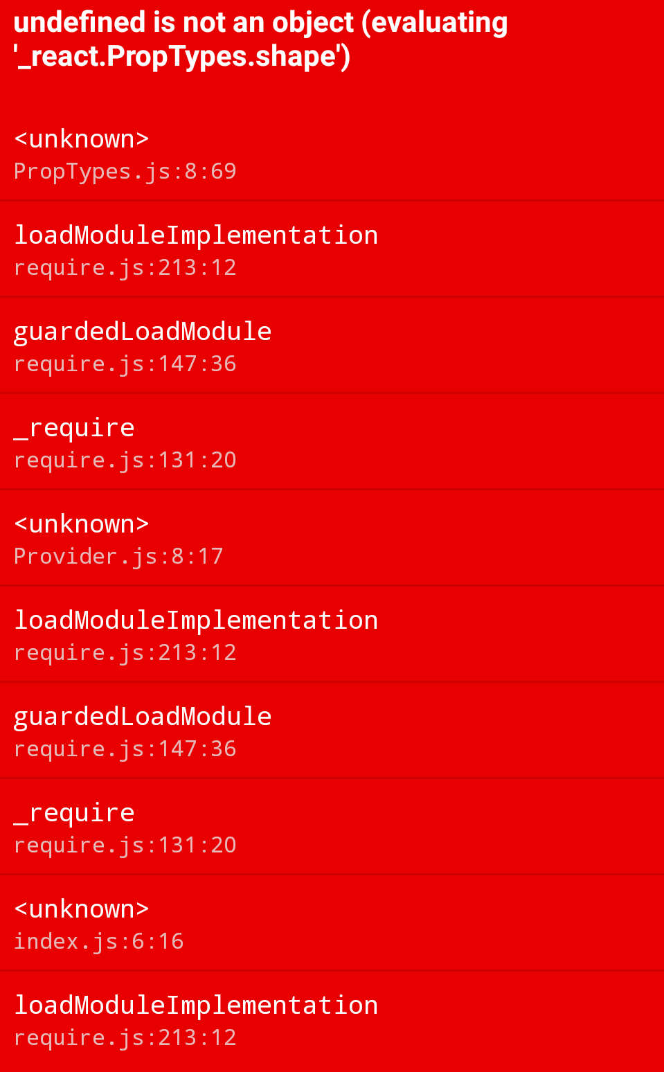 Packages: (wanted => installed) react: 16.0.0 => 16.0.0 react-native: 0.52.2 => 0.52.2 prop-types: “15.6.1”,