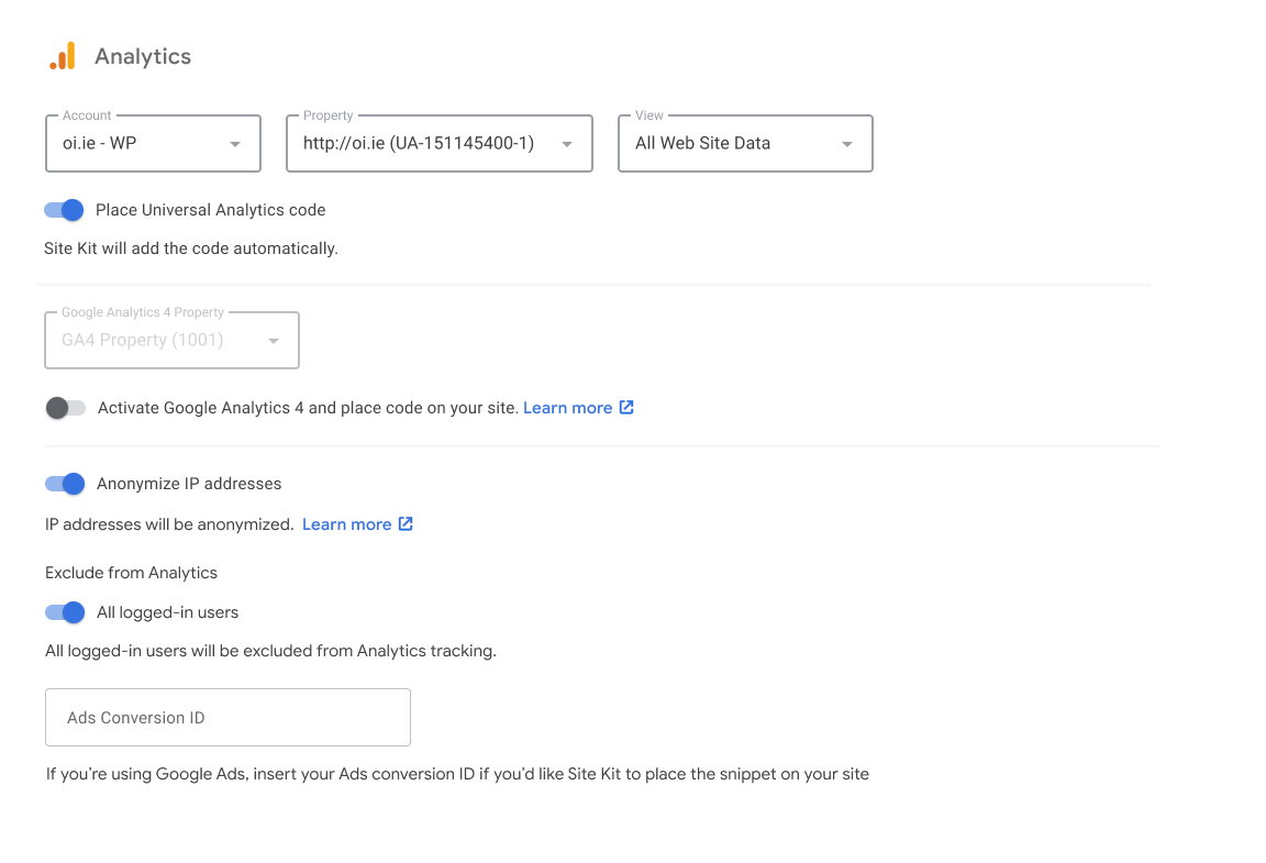 - The full GA4 settings behavior (as if setting up GA4 for the first time) should be enabled and the control to enable GA4 will be replaced by the normal GA4