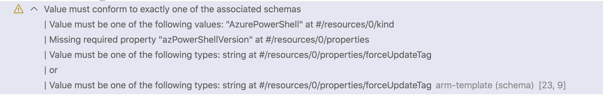 From: Stephen Weatherford (MSFT) @.> Sent: Wednesday, March 31, 2021 5:30 PM To: microsoft/vscode-azurearmtools @.> Cc: Kenneth Benjamin @.>; Mention @.> Subject: Re: [microsoft/vscode-azurearmtools] Microsoft.Resources/deploymentScripts warning (#1271)