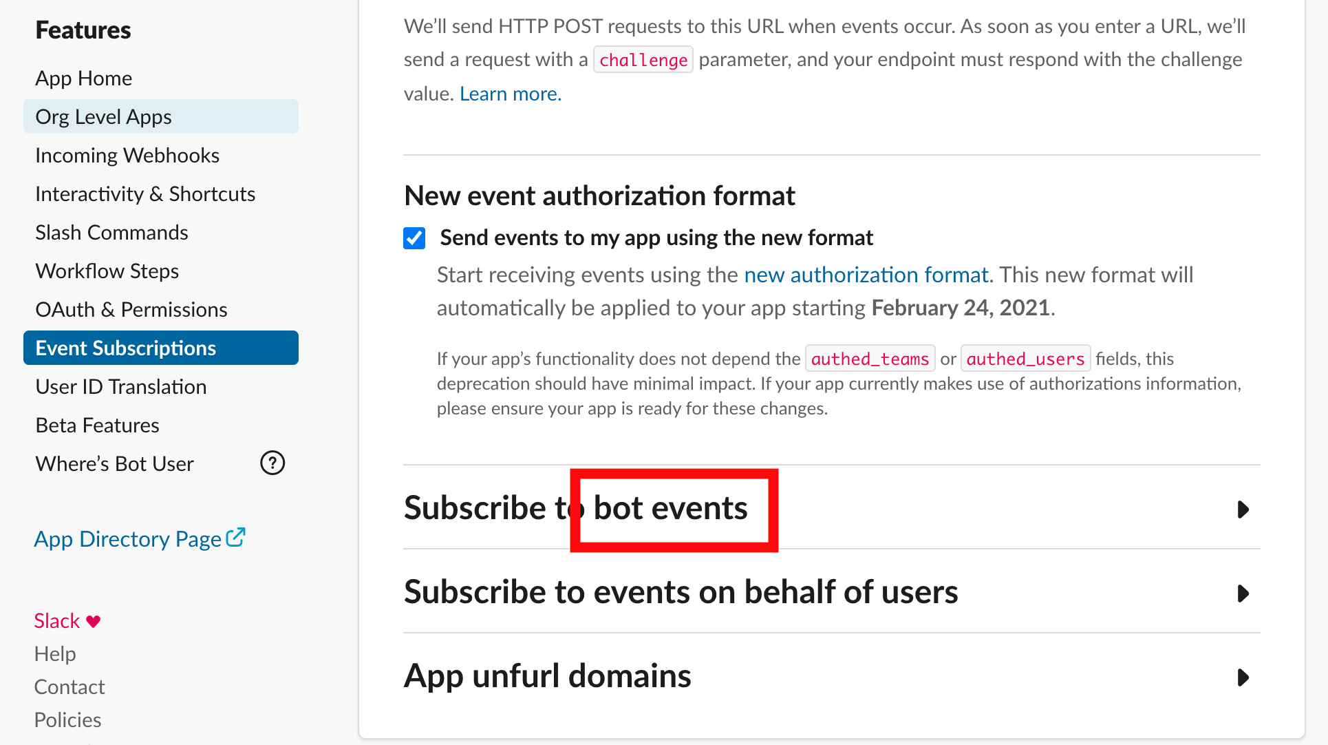 is not suitable for the purpose. The flag tells whether an event is a bot event. Here is a screenshot of Slack app configuration page:is_bot