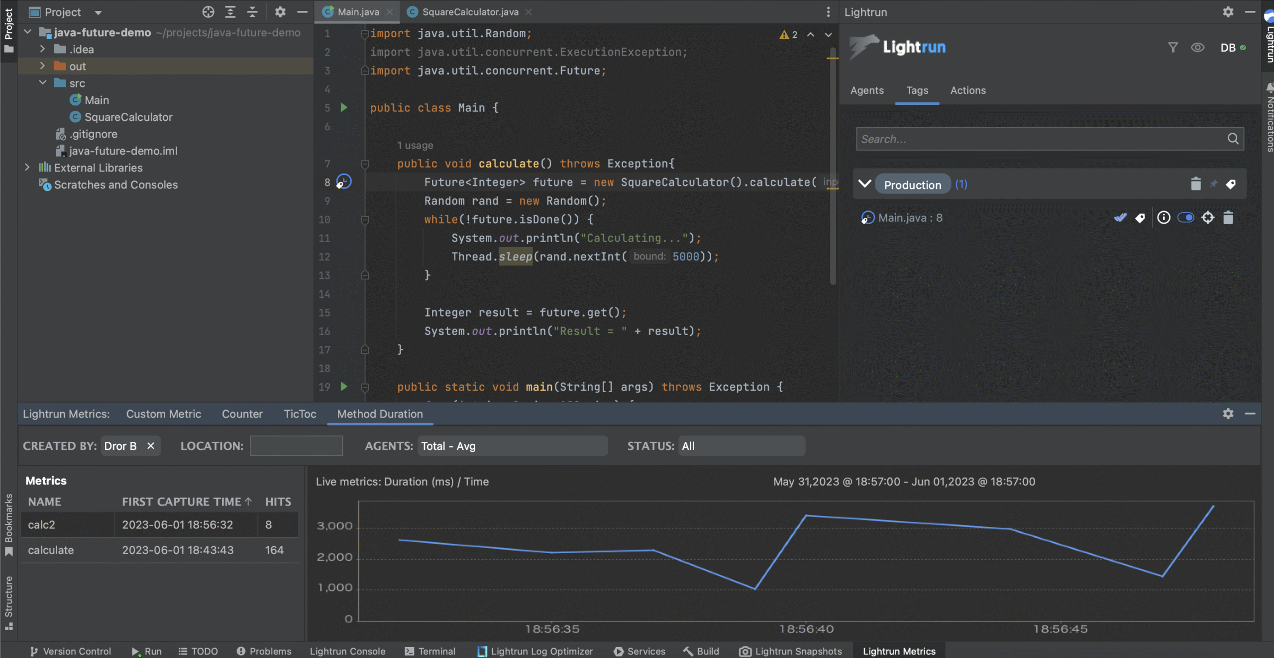 - Performance issues often are specific to users or segments, hence, pinpointing them to a specific client or segment using profilers and APM tools is hard. In addition, such tools (APMs) do not provide code related information. With Lightrun Metrics, developers would find it intuitive to debug such issues directly from the IDE dedicated plugin tab.