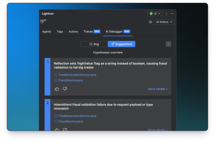 Under the hood, Lightrun combines code-aware models with live runtime context so its suggestions map directly to real behavior in your systems.