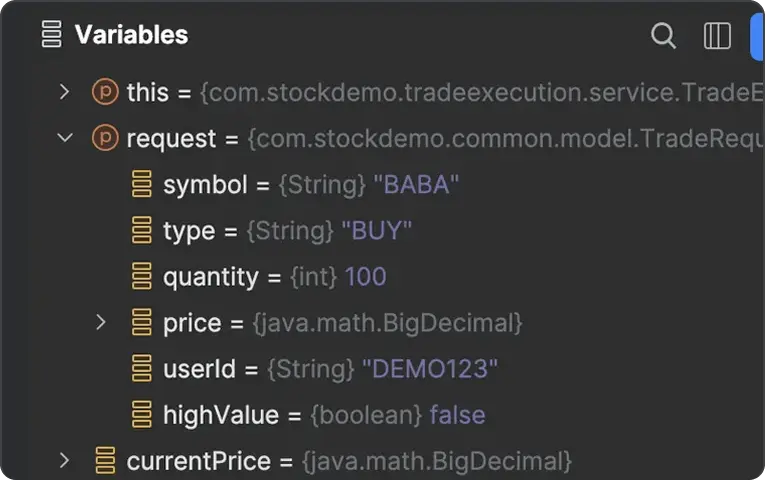 Connect directly to remote environments from your IDE and capture runtime data on demand. Inspect execution paths, variables, and logic under live traffic without changing code.