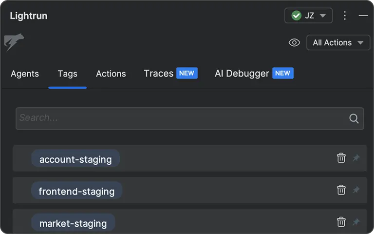 Select a running service from the IDE and dynamically inject logs, snapshots, or metrics without needing to redeploy.