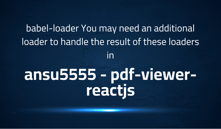Problem solution for babel-loader You may need an additional loader to handle the result of these loaders in ansu5555 pdf-viewer-reactjs