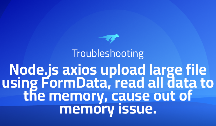 Problem solution for Node.js axios upload large file using FormData, read all data to the memory, cause out of memory issue.