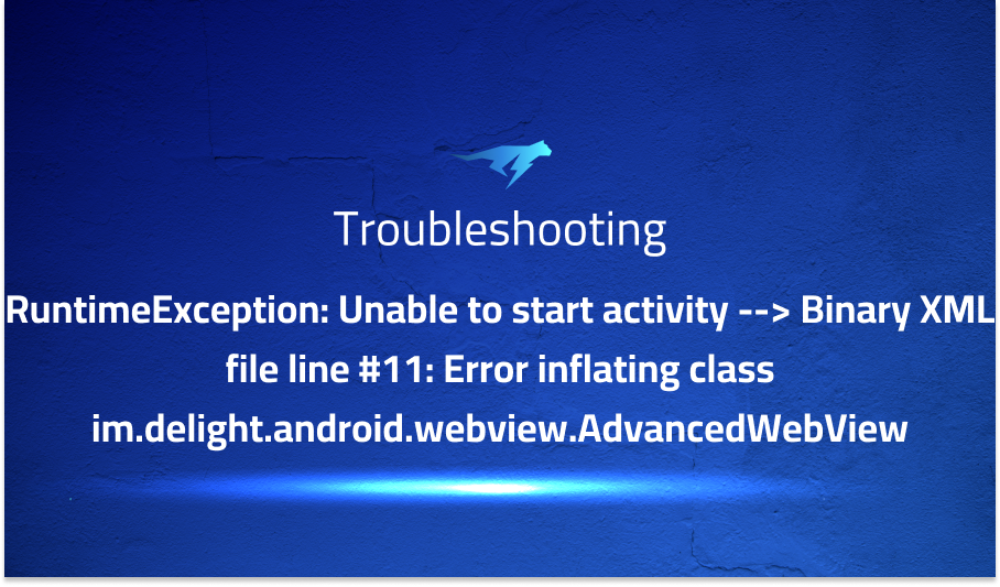 Problem solution for: RuntimeException: Unable to start activity –> Binary XML file line #11: Error inflating class im.delight.android.webview.AdvancedWebView
