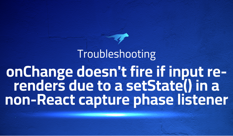 Problem solution for onChange doesn’t fire if input re-renders due to a setState() in a non-React capture phase listener