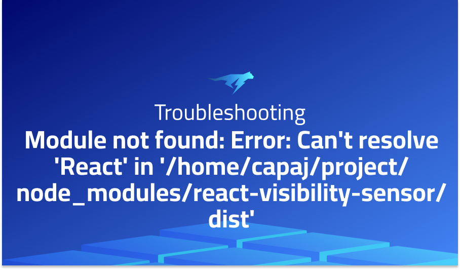 Received an error message, stating that the module “React” could not be found in the specified path. The error message specifically points to the file “visibility-sensor.js” located in the “react-visibility-sensor/dist” directory.