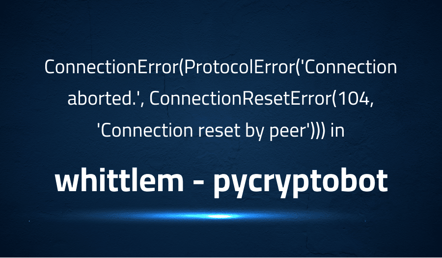 ConnectionError(ProtocolError(‘Connection aborted.’, ConnectionResetError(104, ‘Connection reset by peer’))) in whittlem pycryptobot