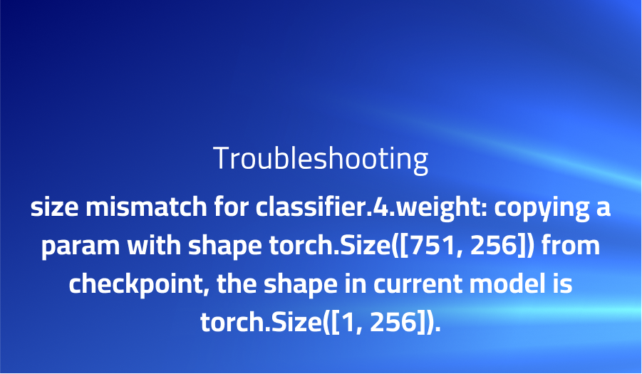 size mismatch for classifier.4.weight: copying a param with shape torch.Size([751, 256]) from checkpoint, the shape in current model is torch.Size([1, 256]).