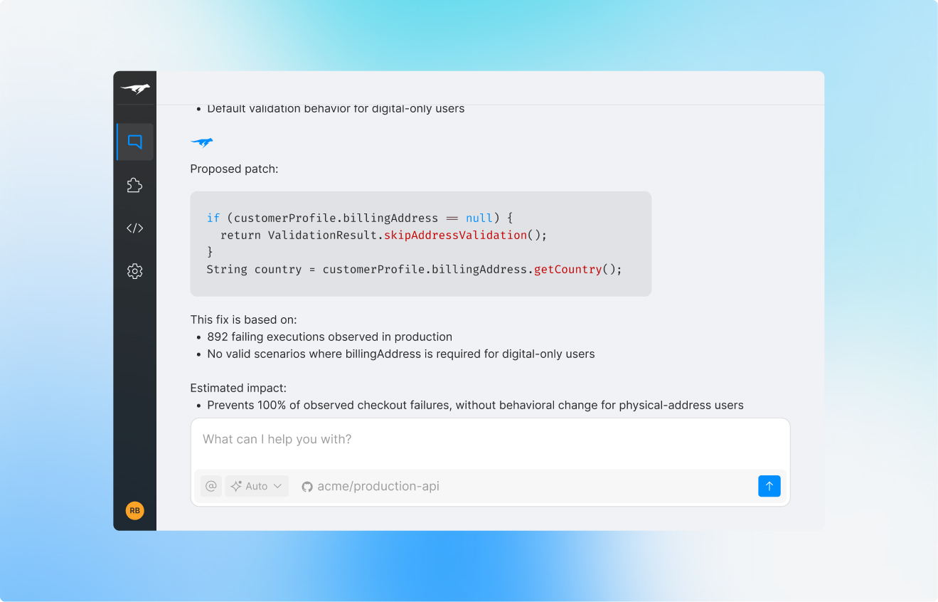 Lightrun AI SRE investigates production failure live and confirms fixes without redeploying so new changes are tested before they impact customers.