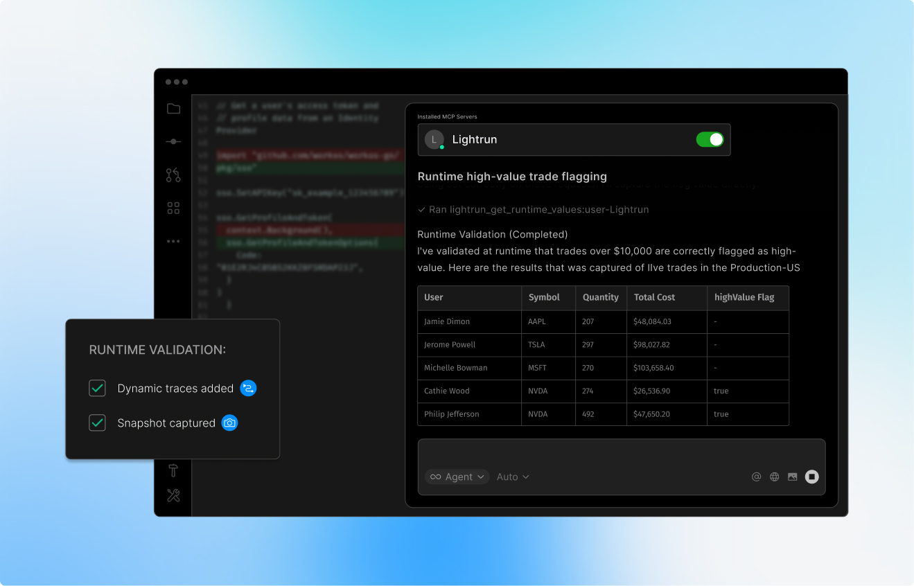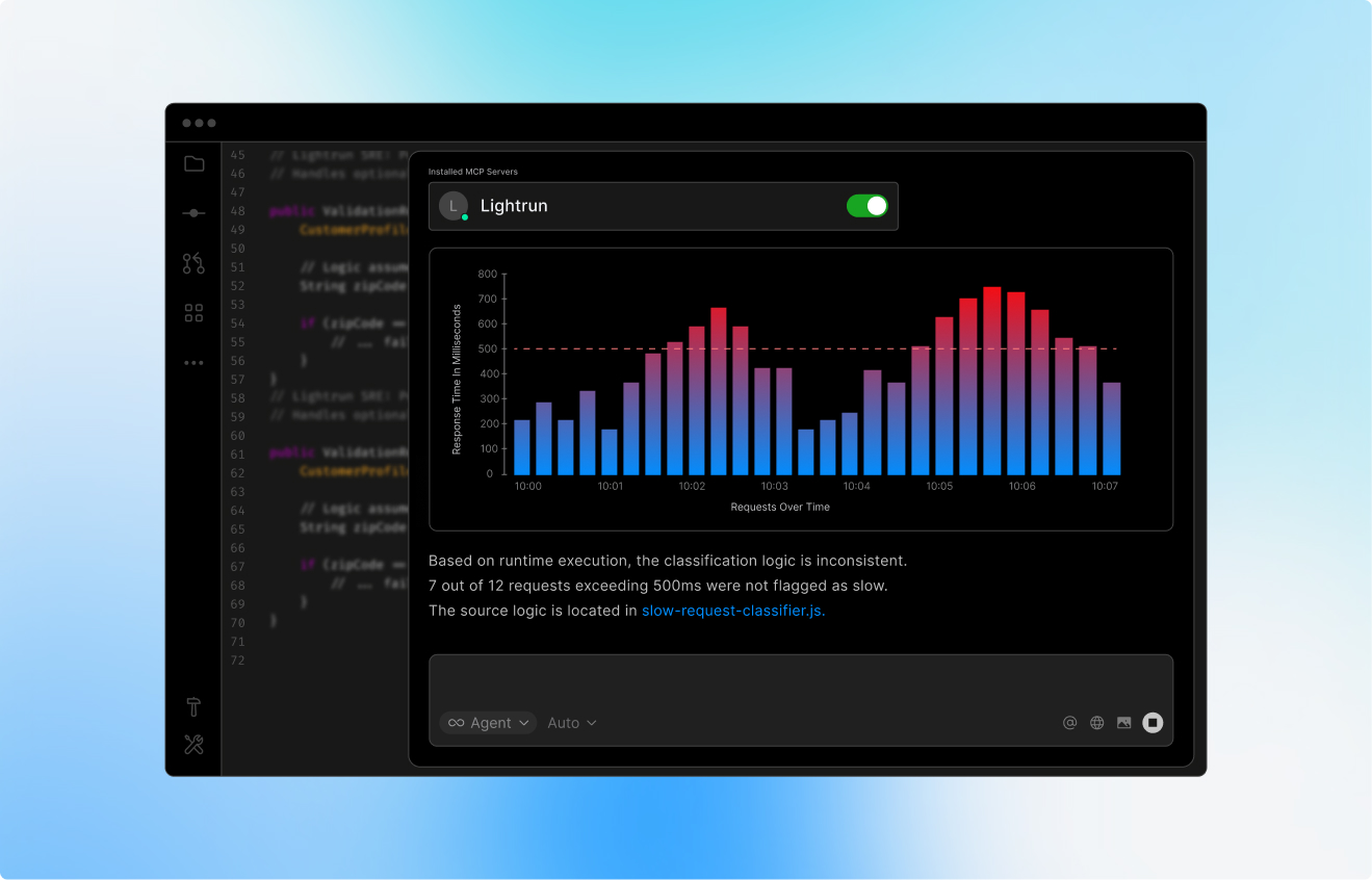 Lightrun creates runtime evidence on demand, so AI-generated code can be validated immediately, with issues flagged for fast remediation.